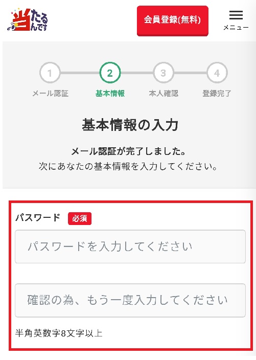 では、当たるんですの会員登録を画像付きで解説していきます。